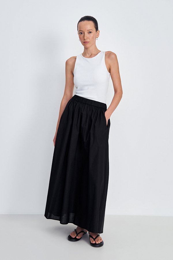 - Макси. Такой «низ» добавляет облику нотки романтики. В наличии – нежные бирюзовые, розовые, голубые модели, а также легкие длинные одежды с орнаментами и ориентальными узорами. И, конечно, для ярких топиков и блузок мы создали черные и темно-синие юбки.