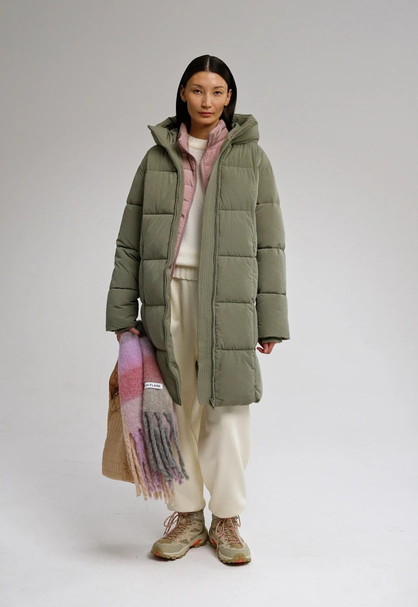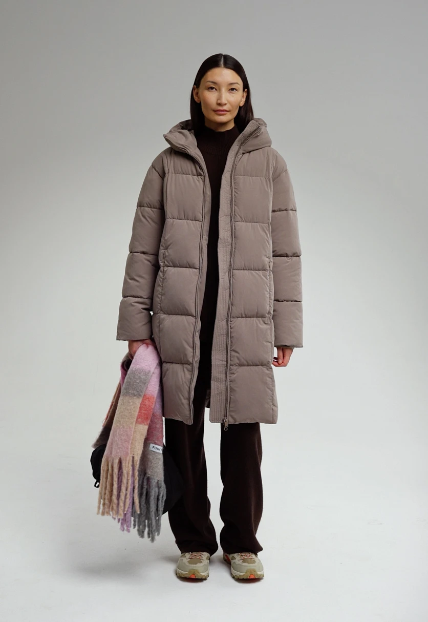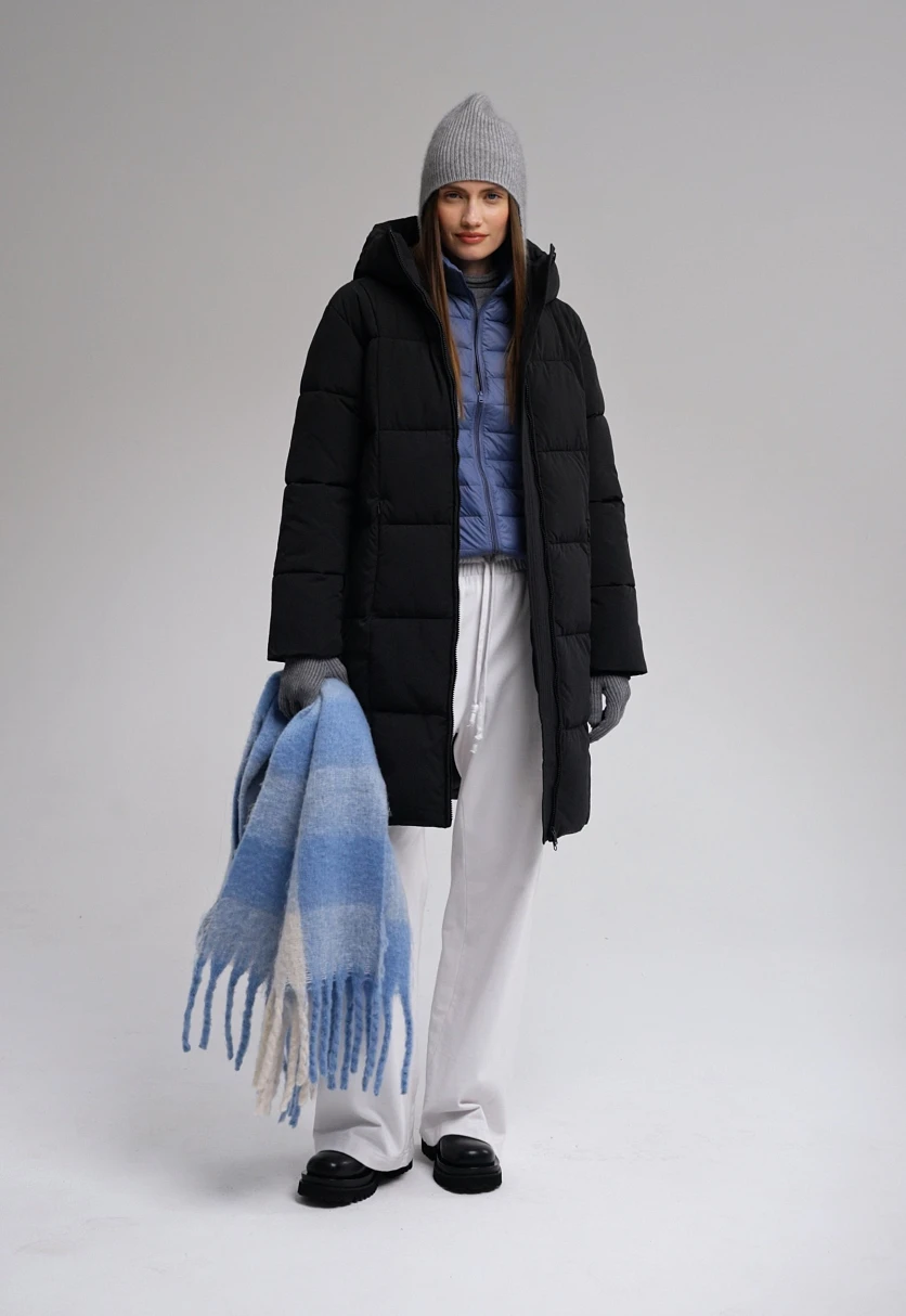 Стеганое пальто с капюшоном надежно защитит от морозов в холодное время года. Модель выполнена из технологичной ткани, которая, благодаря специальным пропиткам, защищает от мокрого снега, дождя и ветра, при этом пропускает воздух и позволяет телу дышать. Ткань устойчива к загрязнениям и отличается износостойкостью. Внутри изделия — искусственный утеплитель Down Fill, который по своим теплоизоляционным свойствам идентичен натуральному пуху, при этом гипоаллергенен, более легкий, не сбивается в комки и равномерно распределяется внутри изделия даже после стирки. Пуходержащая пропитка предотвращает миграцию искусственного пуха через ткань. Легкий и прочный подклад обработан антибактериальной и полиуретановой пропитками, которые предотвращают развитие микрофлоры и продлевают срок службы изделия. Пуховик свободного кроя комфортно садится по фигуре, не сковывая движения. Несъемный капюшон и внутренние манжеты служат дополнительной защитой от ветра. Застегивается на центральную молнию.