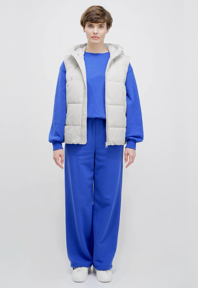 Объемный уютный жилет дополнит повседневные и спортивные образы на осень и весну. Основной материал жилета — прочный влагостойкий полиэстер. Жилет утеплен легким технологичным наполнителем Downfil. Аналог утиного пуха хорошо сохраняет тепло, не деформируется и не утяжеляет изделие. Детали: прямой крой, силуэт оверсайз, карманы, застежка на молнию, воротник-стойка.